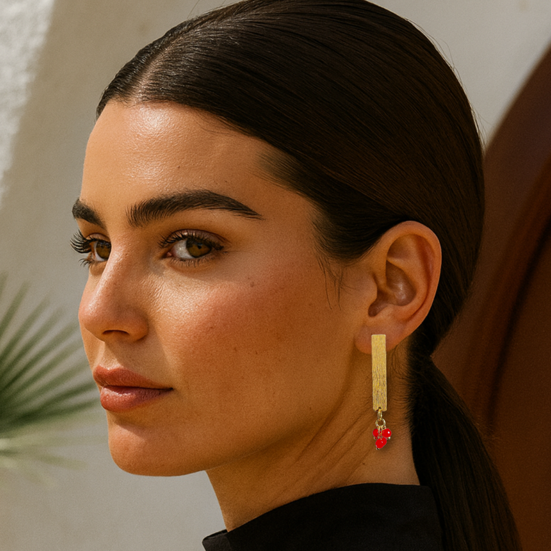 Los pendientes Nara son ese pequeño gran detalle que marca la diferencia. Un diseño ligero, minimalista y con el toque vibrante del rojo, ideal para quienes buscan elegancia sin esfuerzo. Perfectos para invitadas de boda o para elevar tu día a día con estilo.Los Nara no son unos pendientes más: tienen ese “algo” que no sabes explicar, pero que hace que te miren dos veces. Ligeros, dorados, con ese toque rojo que no falla. ¿Te suenan a ti también a feria, a risas o a una boda de verano? Exacto, justo eso.