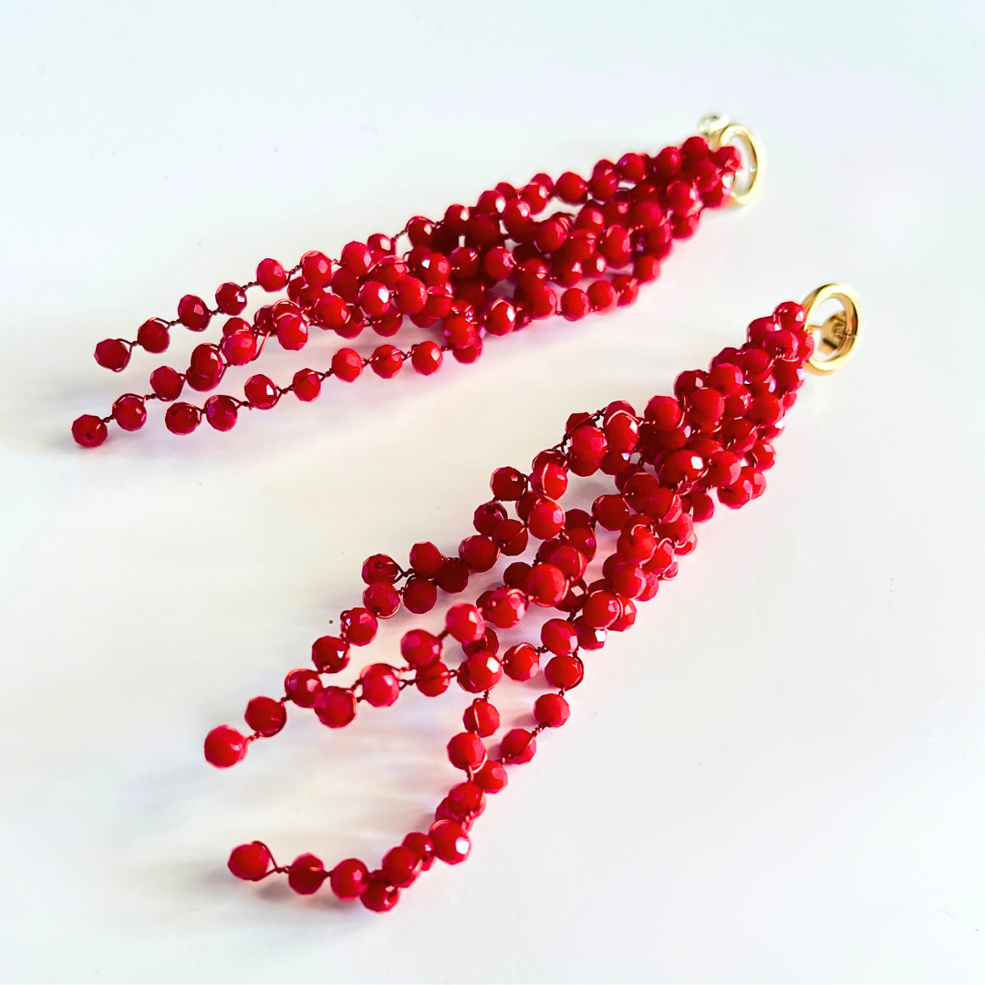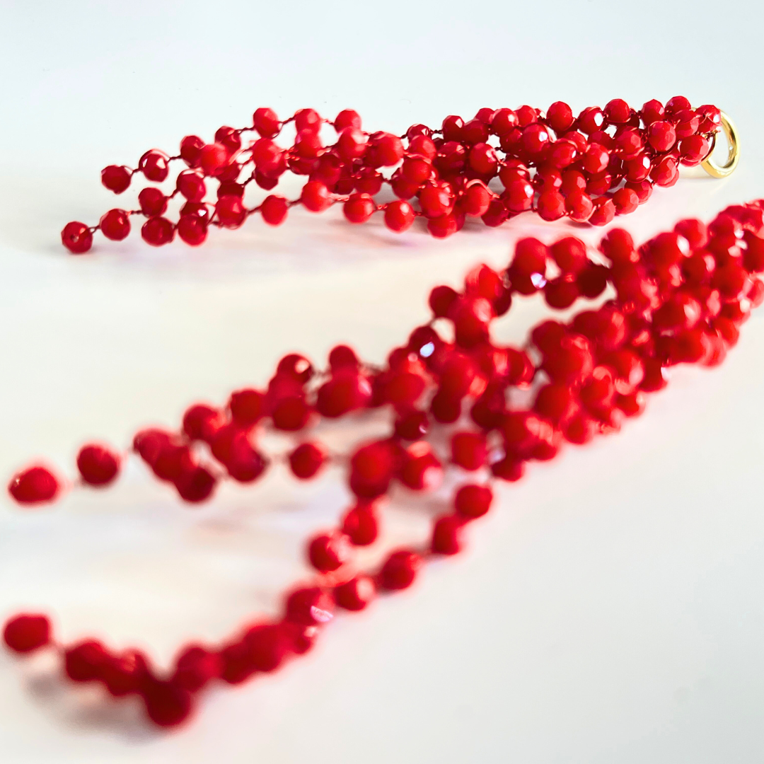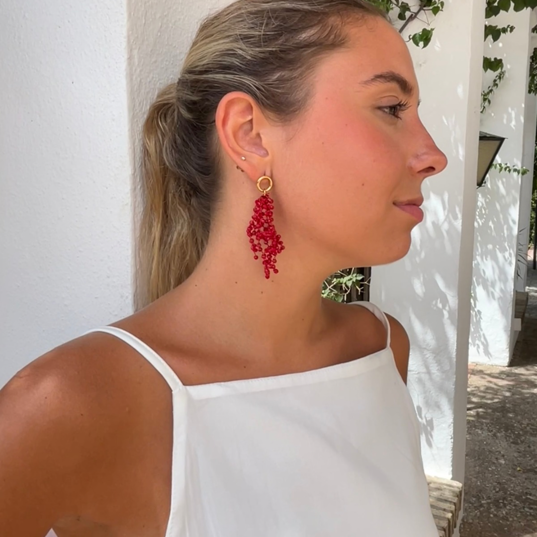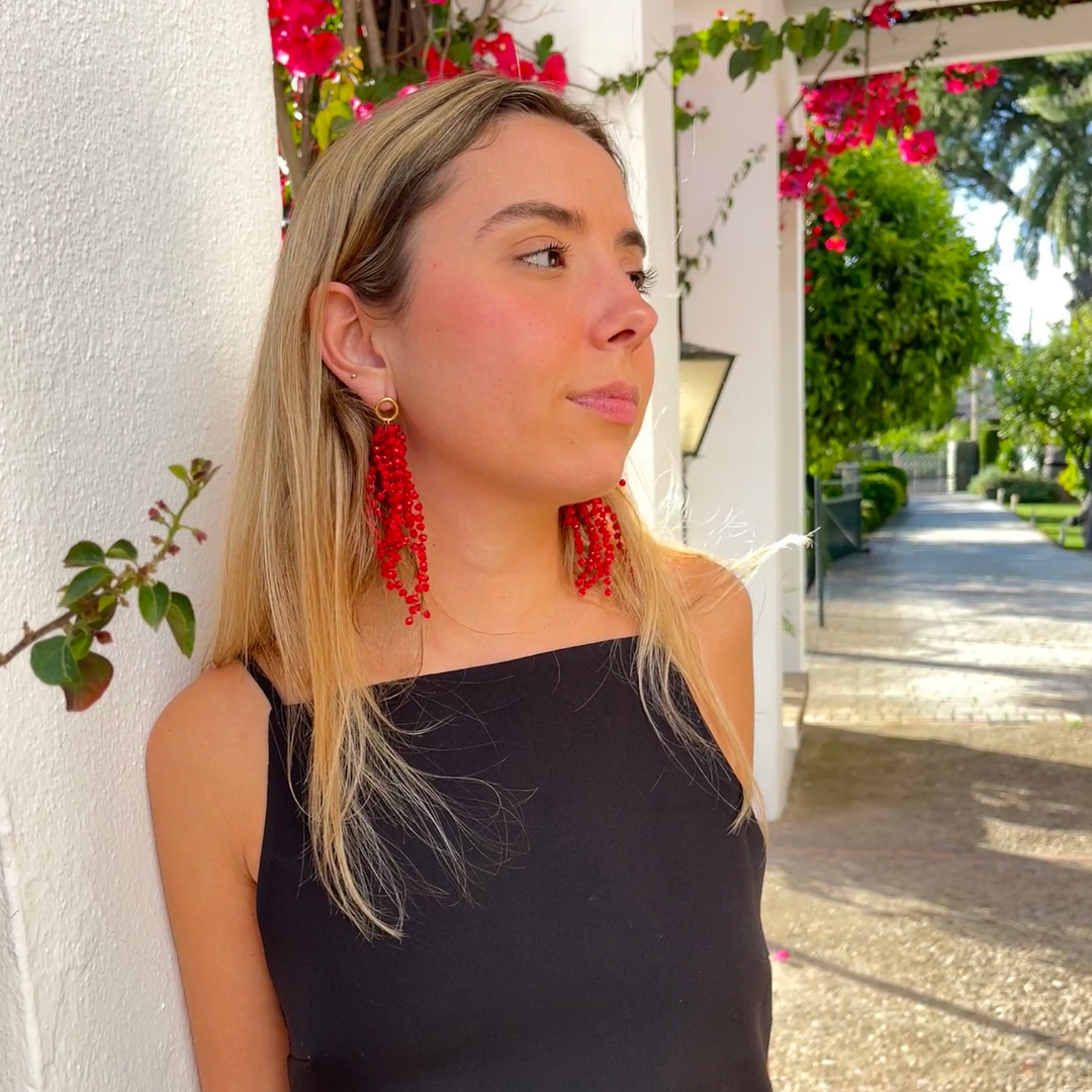 Los Pendientes Celine son la definición de elegancia y movimiento. Su diseño en cascada con cuentas brillantes añade un toque sofisticado y lleno de personalidad. Disponibles en rojo, burdeos y buganvilla, estos pendientes largos son ideales para bodas, fiestas y eventos especiales.  Combínalos con un vestido liso para darles el protagonismo que merecen o añádelos a un look más atrevido para un impacto total.